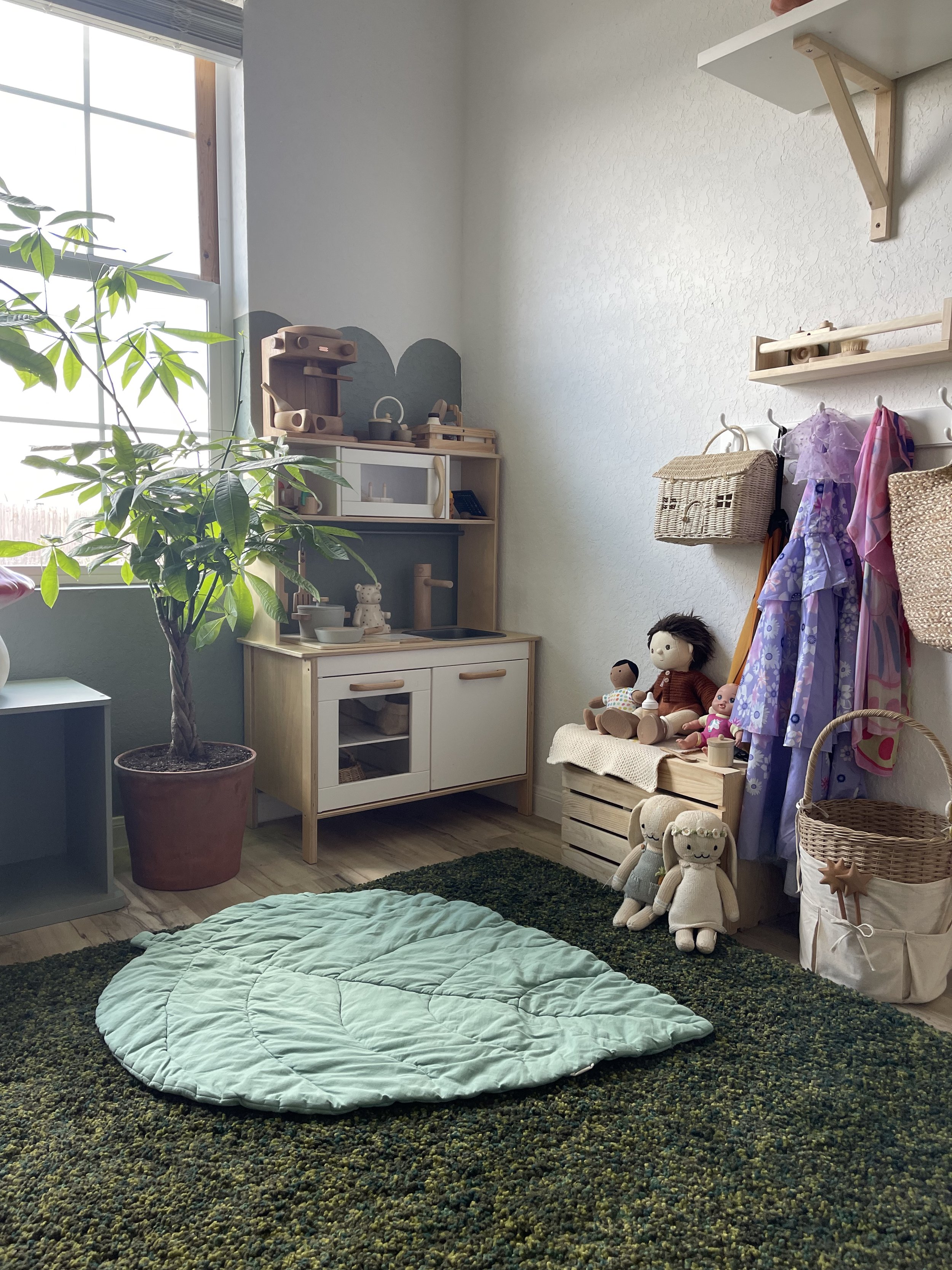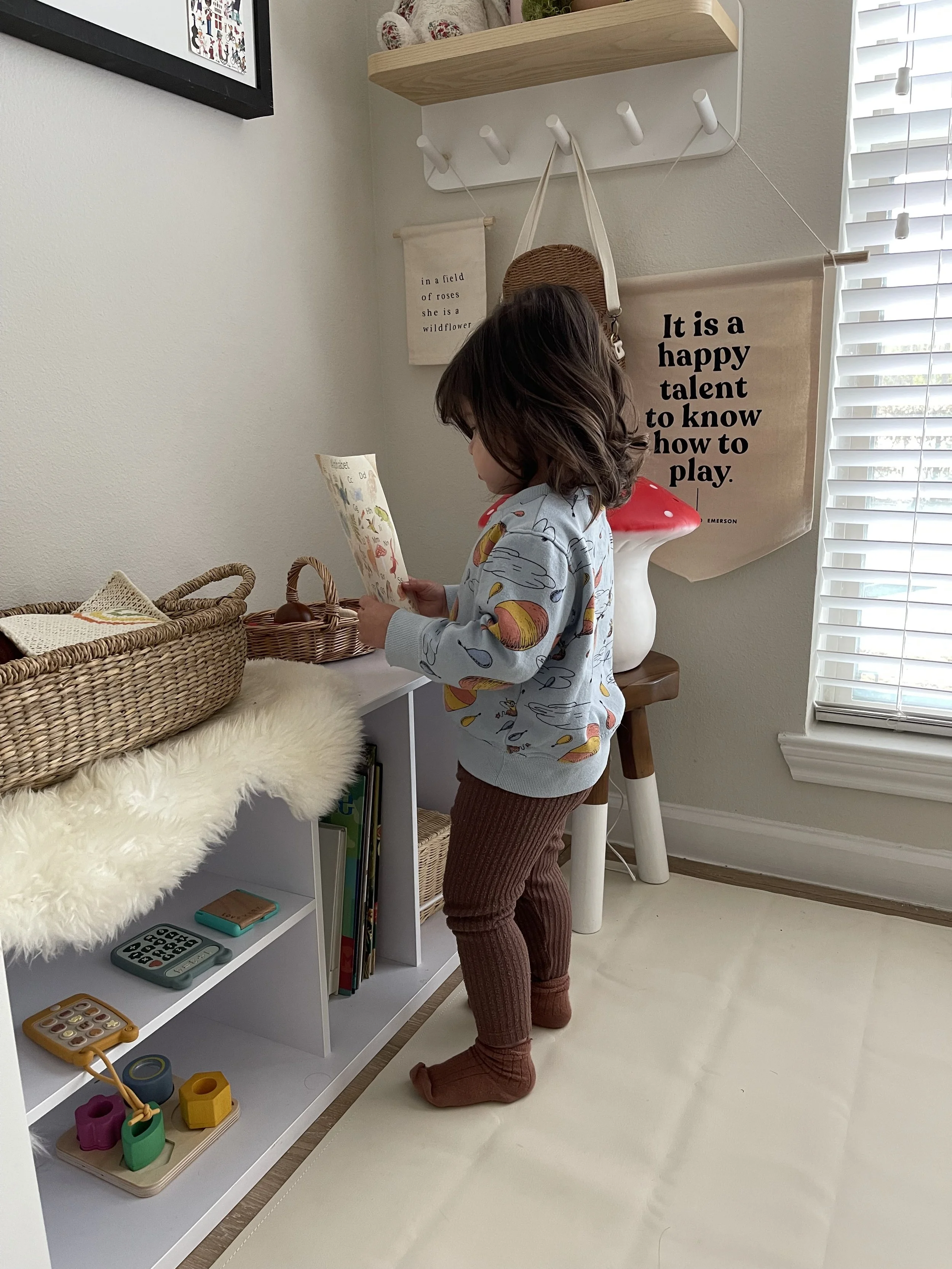 This is a small shift that makes a BIG difference. When kids can reach their toys, access materials, see themselves, and have age appropriate books and toys, they use the space more.