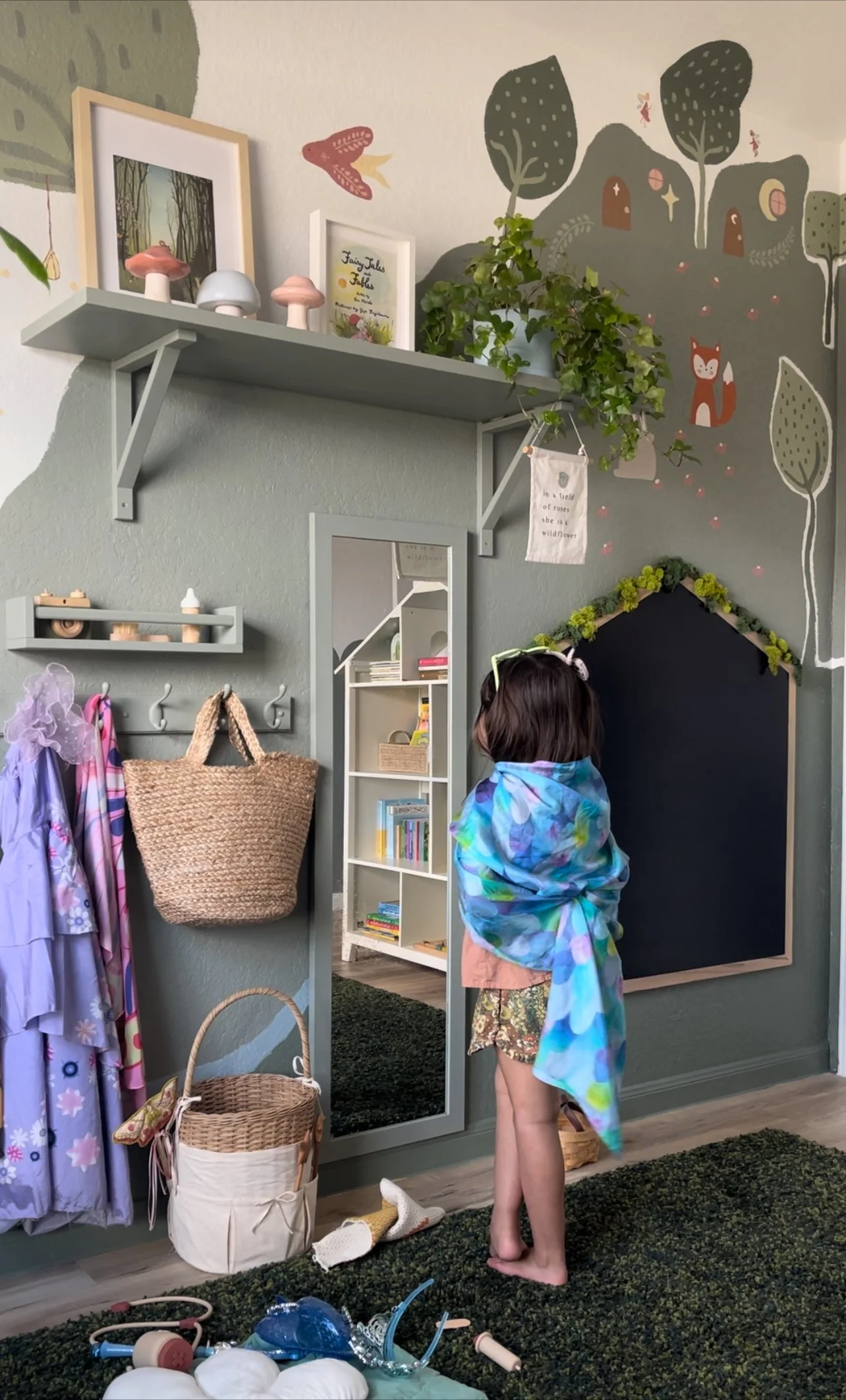A simple dress-up area instantly transforms a room into a space for storytelling and pretend play.