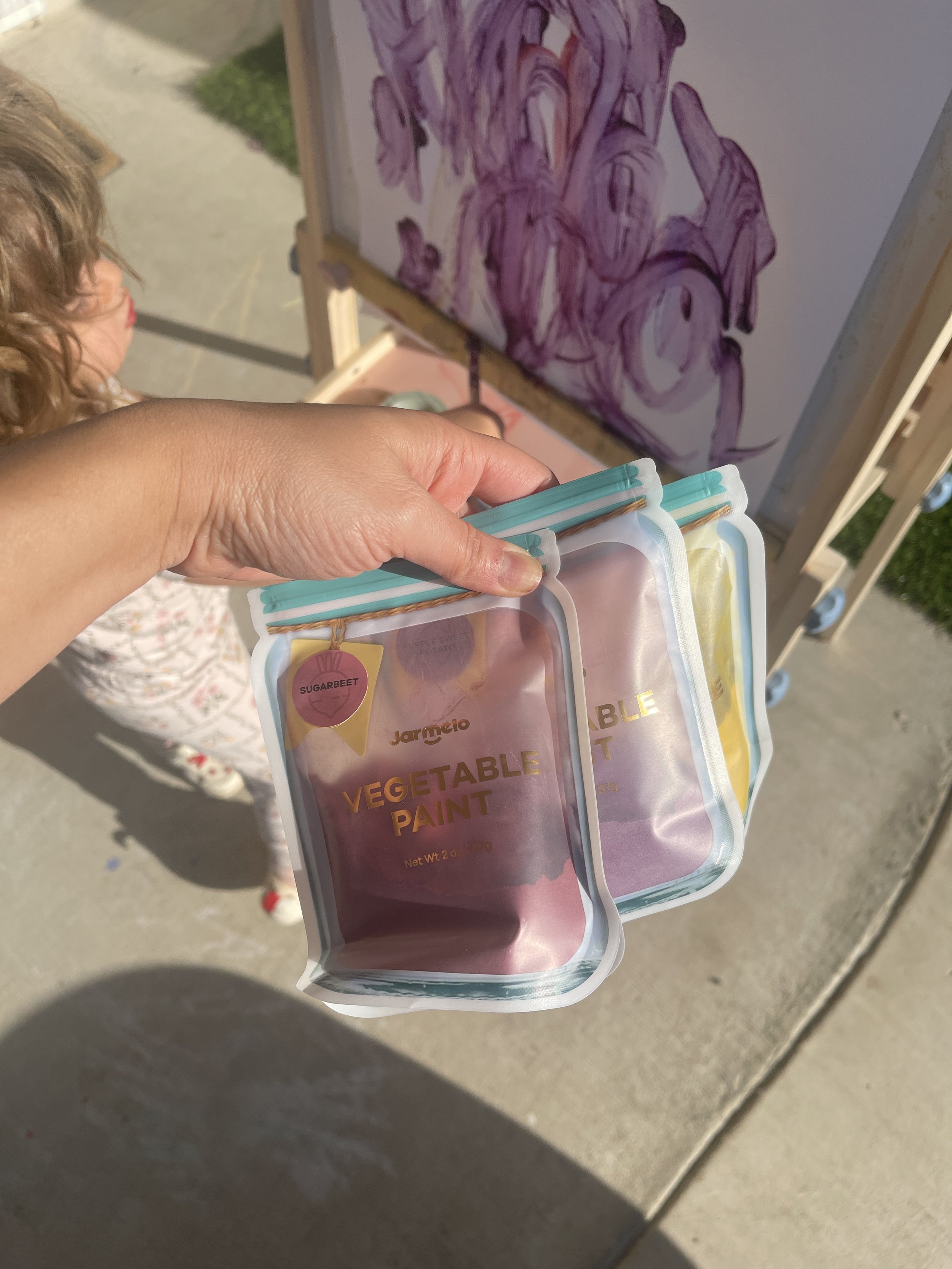 Washable paints (these taste-safe paints made of veggies are great too for mouthing two-year olds like mine!)