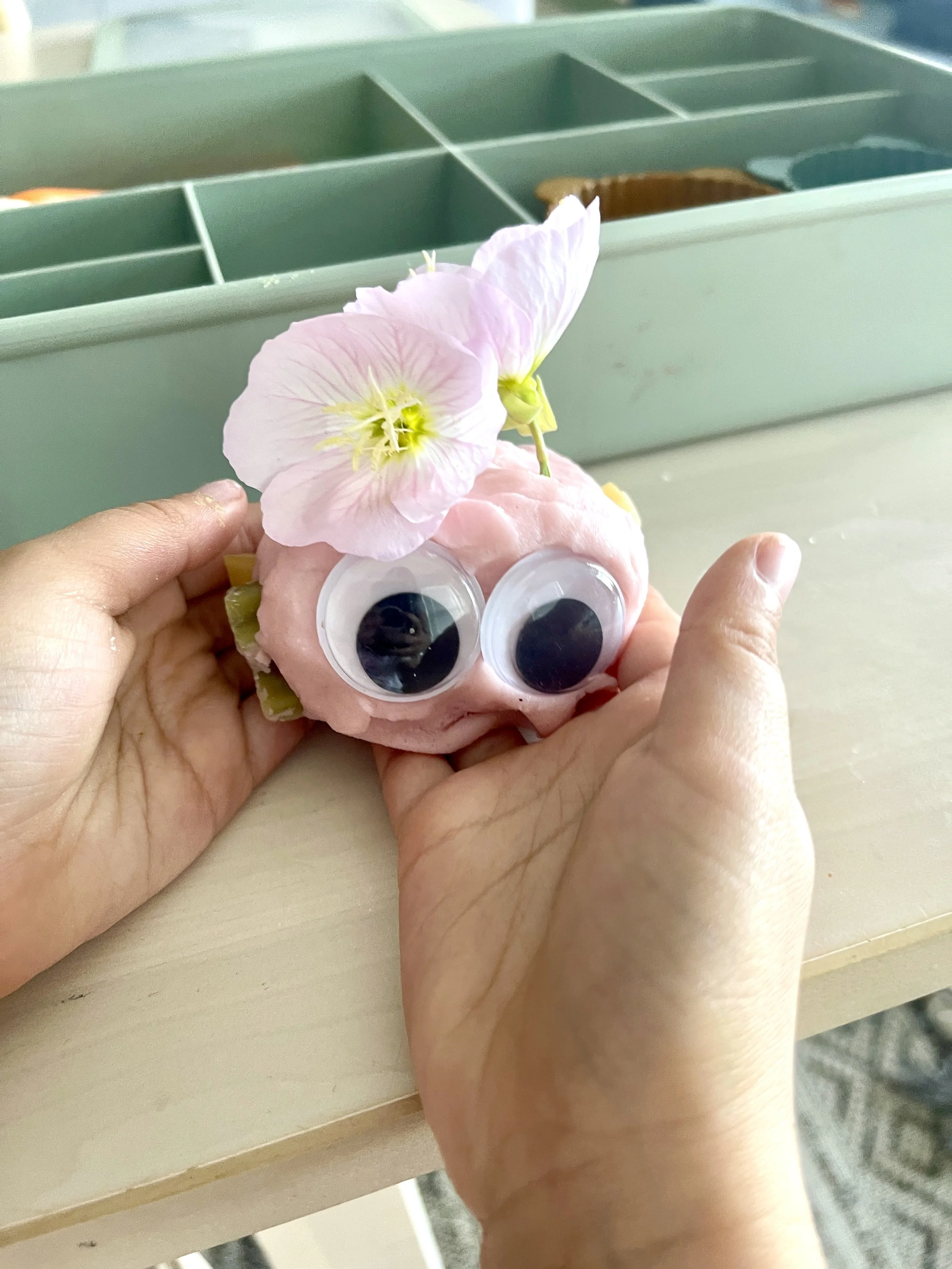 Flowers, leaves, green dough